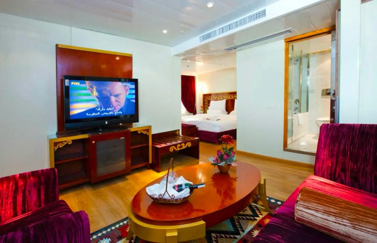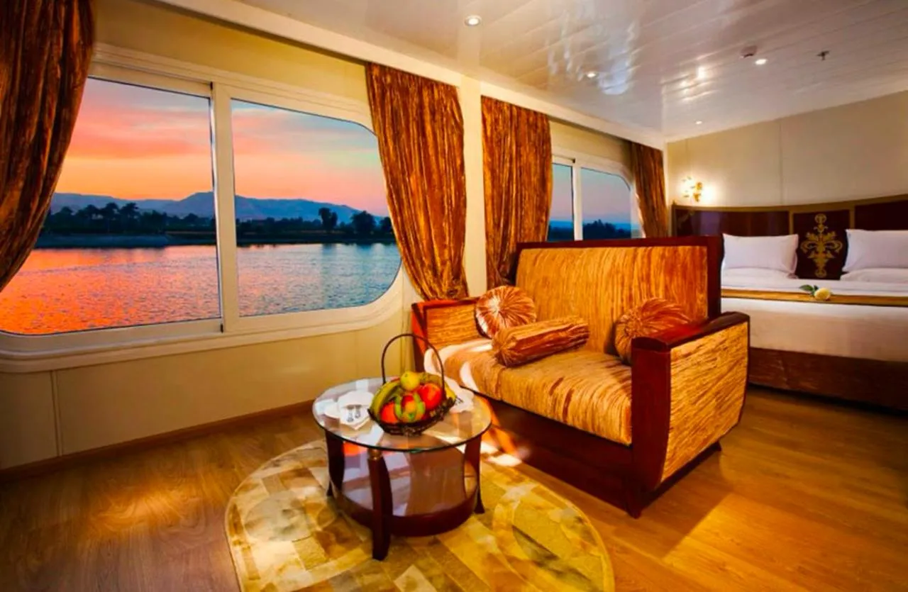 on the Nile Cruise in style aboard the 5-star MS Al Hambra, a top-rated Deluxe Nile cruise ship from Luxor, featuring spacious cabins with panoramic Nile views, elegant interiors, and exceptional comfort. - All-Inclusive, Worry-Free Experience